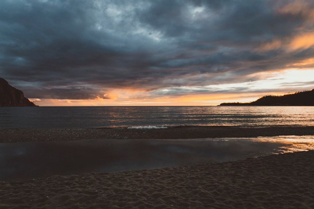 Eventually I pulled into a rest-stop along the shore of Lake Superior and sat on the beach. I was alone on the sand of an inlet called Old Woman Bay—fitting name for the quiet sanctuary it proved to be.